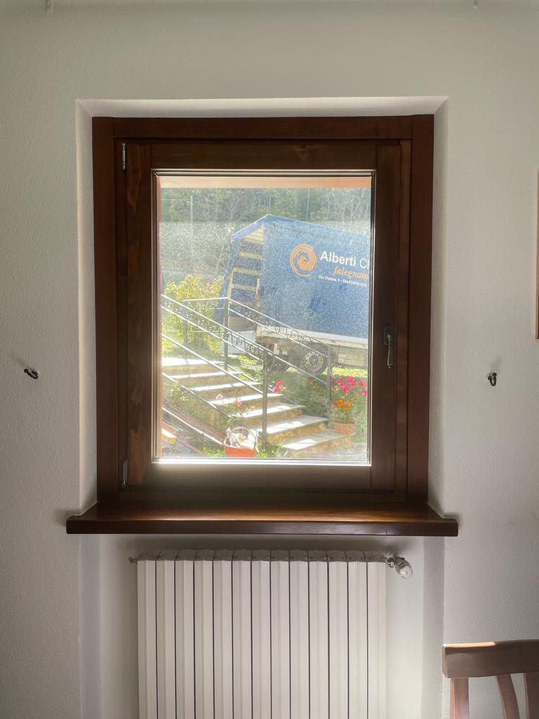 Lavoro di isolamento termico utilizzando per i serramenti e portoncini l'applicazione di legno in abete lamellare applicando esternamente l'alluminio.